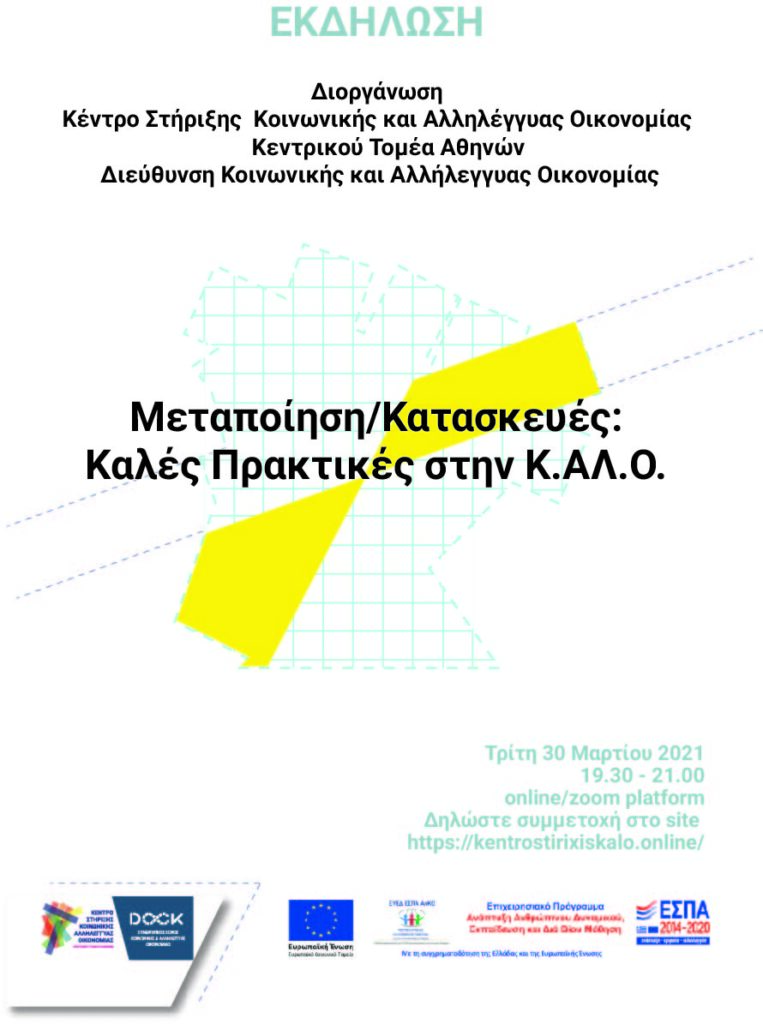 Τρεις φορείς Κ.ΑΛ.Ο., η ΚΟΙΝΣΕΠ ΚΑΝΝΑΒΙΟ, η ΚΟΙΝΣΕΠ STARAMAKI και η ΚΟΙΝΣΕΠ ΡΟΚΑΝΙ που δραστηριοποιούνται τους τομείς της Μεταποίησης και των Κατασκευών παρουσιάζουν τα εγχειρήματά τους και απαντούν σε ερωτήσεις σχετικά με τις επιπτώσεις του Covid-19, τις δυσκολίες και τις προκλήσεις που αντιμετώπισαν, τις σκέψεις τους για το μέλλον και την Κ.ΑΛ.Ο.