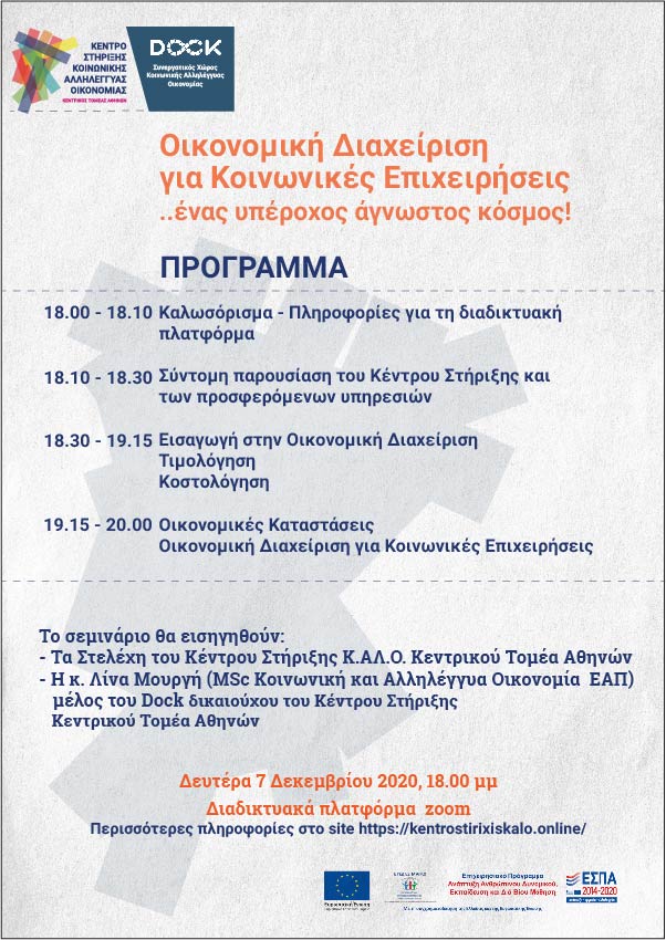 Διαδικτυακό σεμινάριο, Δευτέρα 7 Δεκεμβρίου 2020 και ώρα 18:00 – 20:00