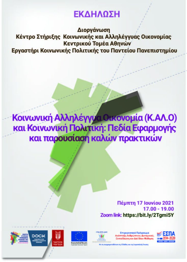 Το Κέντρο Στήριξης Κ.Αλ.Ο Κεντρικού Τομέα Αθηνών σε συνεργασία με το Εργαστήρι Κοινωνικής Πολιτικής του Παντείου Πανεπιστημίου διοργανώνει Εκδήλωση την Πέμπτη 17 Ιουνίου και ώρα 17.00 – 19.00
