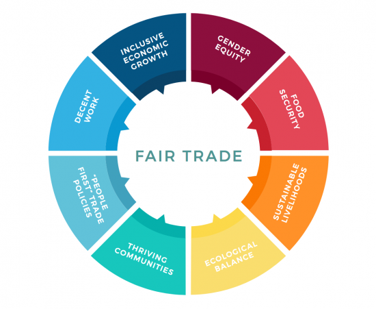Το δίκαιο αλληλέγγυο εμπόριο αφορά όλη την εφοδιαστική αλυσίδα (παραγωγή, μεταποίηση, διακίνηση, διάθεση & κατανάλωση). Στην αλυσίδα αυτή τα οφέλη μοιράζονται δίκαια σε όλα τα εμπλεκόμενα μέρη, ικανοποιούνται οι βιοποριστικοί στόχοι, διασφαλίζονται οι βιώσιμες συνθήκες εργασίας, διατηρώντας την οικολογική ισορροπία και την ευημερία των κοινοτήτων. Η παγκόσμια χάρτα δίκαιου και αλληλέγγυου εμπορίου μας δείχνει το δρόμο και τον τρόπο.